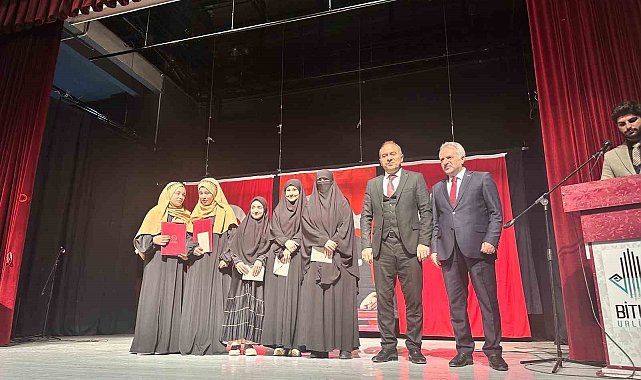 Bitlis'te İmam Hatip Okullarının kuruluş yıldönümü ve hafızlık belge töreni coşkulu bir programla kutlandı.Şehit Mahir Ayabak İmam Hatip Ortaokulu öncülüğünde düzenlenen etkinlikte, İmam Hatip Okulları kuruluş yıldönümü coşkusu ile hafızlık belge töreni bir arada kutlandı.Programa Bitlis İl Müftüsü Kadir Koçak, İl Milli Eğitim Müdürü Vedat Kaya, İl Milli Eğitim Müdür Yardımcı Nedim Yoldaş, Şube Müdürü Özcan Taşcan, öğretmenler, öğrenciler ve veliler katıldı.Program kapsamında hafızlık belgesini almaya hak kazanan öğrenciler, gayret ve azimleriyle büyük beğeni topladı.