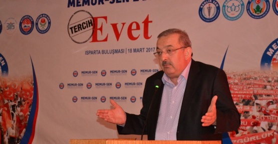 Memur-Sen tarafından ülke genelinde başlatılan Memur Sen’e Davet Tercih Evet buluşması Isparta Öğretmenevi Toplantı Salonu’nda gerçekleşti.Toplantıya Memur-Sen Genel Başkan Yardımcısı, Diyanet-Sen Genel Başkanı Mehmet Bayraktutar, Eğitim-Bir-Sen Genel Başkan Vekili Latif Selvi, Memur-Sen İl Temsilcisi İhsan Arıcı, sendika şube başkanları ve üyeler katıldı. Memur- Sen Genel Başkan Yardımcısı, Diyanet-Sen Genel Başkanı Mehmet Bayraktutar, Memur-Sen üyelerinin bu davanın birer hizmetkarı olduğunu her zaman gösterdiğini belirterek, “Memur Sen olarak uyumadan sıkıntı var demeden günümüzün şartları ne olursa olusun bu yolda mücadelemiz devam edecektir” dedi.Vesayet sistemine başkaldıran Memur-Sen’dirTarihi süreçten bahseden Bayraktutar, “Bir kitapçık atıldı. Başbakan ağlayarak kitap atıldı. Yokluk aldı başını gidiyor. Ülke perişan hele geldi. Hani demokrasiydi. Hani bu milletin seçtiği insanların iktidarıydı. Hani yasama yürütme yargı birbirinden ayı olacaktı? O Mecliste yürütmeyi engellediniz. Tabiki bu böyle gitmez. Bu milleti örgütleyip milletin düşüncelerini dile getirecek bir örgütlenmeden de bizi mahrum ettiler. 28 Şubatta apoletler talimat vermediler mi? Türkiye’yi vesayet altına alan bu kesimlere başkaldıran varsa Memur-Sen”dir” diye konuştu.Memur-Sen Milli bir kuruluşturEşi başörtülü olan birinin laik bir ülkede Cumhurbaşkanı olamayacağı anlayışının olduğu dönemi anımsatan Bayraktutuar, “Kişi laik değildir. Bu devletle kurumlarla ilgili bir kavramdır. Kendi yazdığınız Anayasa’da eşitlik maddesi var” dedi. 27 Nisan e-muhtırası verildiğinde bunun sebebi Abdullah Gülü’nü eşinin başörtülü olması olduğu vurgusunu yapan Bayraktutar, “Kanunları kim yapar. Meclis yapar. 411 oyla başörtüsü serbest bırakılıyor. 10 eşkıya bunu siz yapamazsınız diyor. Egemenlik kayıtsızı şartsız milletindir. Bu söz Mustafa Kemal’indir Bunlar kimin arkasına sığınır. Mustafa Kemal’in arkasına sığınır. Mustafa Kemal’i istismar edecek kadar zavallıdırlar. Sizin demokrasi dediğiniz bu yalanı 16 Nisan’da bu zulüm sözleşmesini ortadan kaldıracağız. Sizlerin bu milleti kandırmasına müsaade etmeyeceğiz” diye konuştu. Cumhurbaşkanı Recep Tayyip Eroğan’ın ‘ Bu millete bu milletin içinden çıkmış milli insanlar hizmet eder’ sözünü anımsatan Bayraktutar, “Sayın Cumhurbaşkanım bu sözünüzün arkasında duruyoruz. Memur Sen siz ve yol arkadaşlarınız gibi milli bir kuruluştur” dedi.Milletin ihtiyacına tercüman olmak zorundayızEğitim-Bir-Sen Genel Başkan Vekili Latif Selvi de hedef olarak 1 milyon 111 bin 111 üyeye ulaşmak istediklerini ve toplu sözleşme mamasına böyle oturmak istediklerini söyledi. Memleketin ihtiyacı olan gençlerin yetişmesi ve bu ülke insanın derdine ortak olunması gerektiğini kaydeden Selvi, “Bunun için hepimize büyük görev düşüyor. Başarılı bir çalışma yapmak istiyorsanız bazı parametreleri harekete geçirmeniz gerekir. Saman alevi gibi parlayıp kaybolan hareketler insanlığa bir şey vermez” dedi. Memur-Sen’in bu ülkenin en örgütlü kurumu olduğunu ve tüm çalışanların kamu görevi ifa ettiğini belirten Selvi, “Böylesine güçlü örgütlü yapının bu ülkenin gelişmesine önemli katkıları olacaktır. Gelecek nesillerin yetişmesi için eğitimin gelişimi ve bunu için reformlar yapılabilmesi için katkımızın olması gerekiyor. Memleketimizin geleceği için hizmet edeceğiz. Tüm yaşanan süreçlerle ilgili olarak milletin ihtiyacına tercüman olmak zorundayız” dedi.Bütünün parçasından vazgeçemezdik15 Temmuz’dan önce de sonrada Memur-Sen olarak devamlı nöbette olduklarını kaydeden Selvi, “Teyakkuz halinde olup nerede olumsuzluk varsa karşısına çıkacağız. Nerede olumlu bir şey varsa onun gerçekleşmesi için yanında olacağız. Bizim asıl amacımız bir anayasa değişikliğiydi. Sivil anayasa yapalım istedik. Partiler bir araya gelip bunu başaramadılar. O zaman bütünü elde edemiyorsak onun içindeki parçasından vazgeçemezdik. Onun için bu değişimi son derece olumlu buluyoruz. Yasama yürütme yargı hepsi görevini yapacak. Şu anki sistem vesayet oluşturan sistemdir” açıklamasında bulundu.
