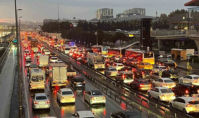 İstanbul'da beklenen yağmur, akşam saatlerinde başladı. Yağmurun etkisiyle artan trafik yoğunluğu yüzde 81'e ulaştı. Trafik yoğunluğu havandan görüntülendi.Meteoroloji yetkililerinin uyarılarının ardından megakent İstanbul'da önce şiddetli rüzgar ardından da beklenen yağmur başladı. Yağmurun başlamasıyla birlikte trafik yoğunluğu da arttı. Ana arterlerde uzun araç kuyrukları oluştuğu gözlendi. Trafik zaman zaman durma noktasına geldi. Yenibosna trafik yoğunluğu kameraya yansıdı. İstanbul Büyükşehir Belediyesi (İBB) Cep Trafik verilerine göre ise trafik yoğunluğu saat 18.20 itibariyle yüzde 81'e ulaştı. Taksim'de ise yağmura hazırlıksız yakalanan vatandaşlar zor anlar yaşadı.Yenibosna E-5 Karayolundaki trafik yoğunluğu havandan görüntülendi.