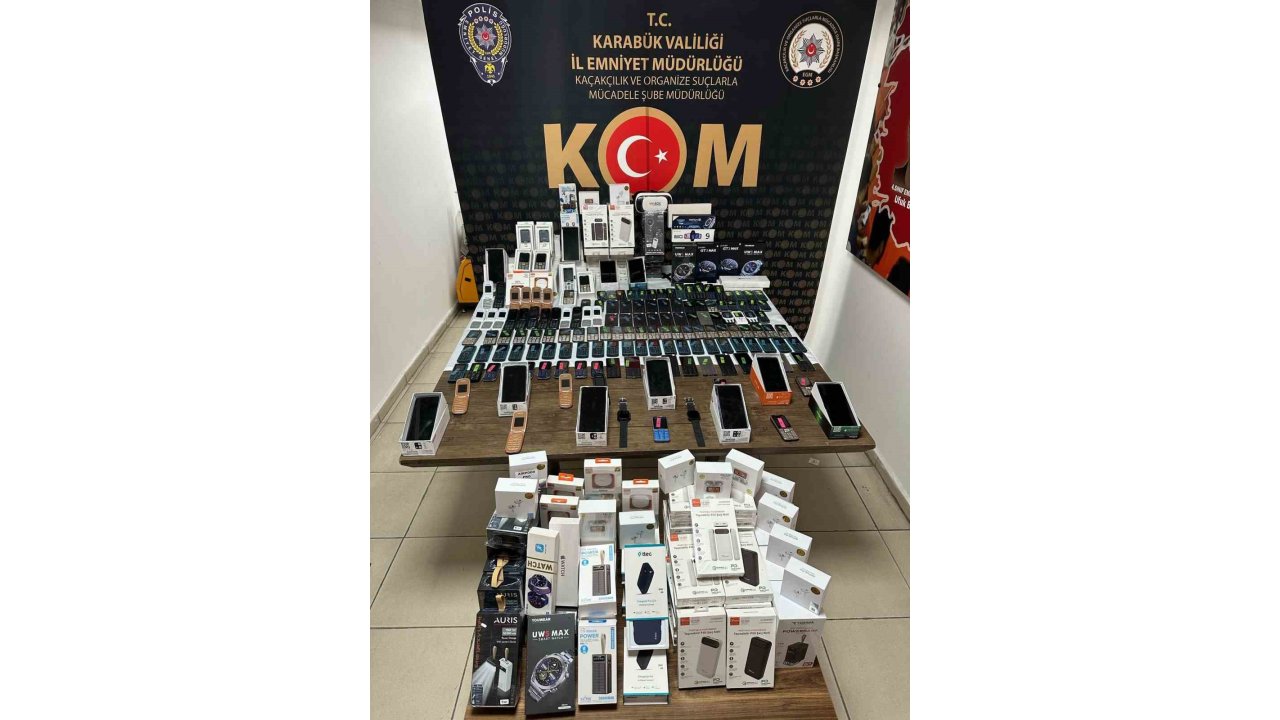 Karabük'ün Safranbolu ilçesinde kaçakçılık olaylarının önlenmesine yönelik düzenlenen iki ayrı operasyonda çok sayıda kaçak ürün ele geçirildi.Karabük İl Emniyet Müdürlüğü Kaçakçılık ve Organize Suçlarla Mücadele (KOM) Şube Müdürlüğü ekipleri tarafından iki ayrı iş yerine yapılan operasyonda, 105 adet gümrük kaçağı cep telefonu, 53 adet klonlanmış gümrük kaçağı cep telefonu, 33 adet faturasız akıllı saat, 95 adet faturasız powerbank ve 11 adet faturasız bluetooth kulaklık ele geçirildi.Operasyon sonucu M.Ç. ve N.Ç. isimli şüpheliler hakkında 5607 Sayılı Kaçakçılıkla Mücadele Kanunu (SKM) kapsamında işlem yapıldı.