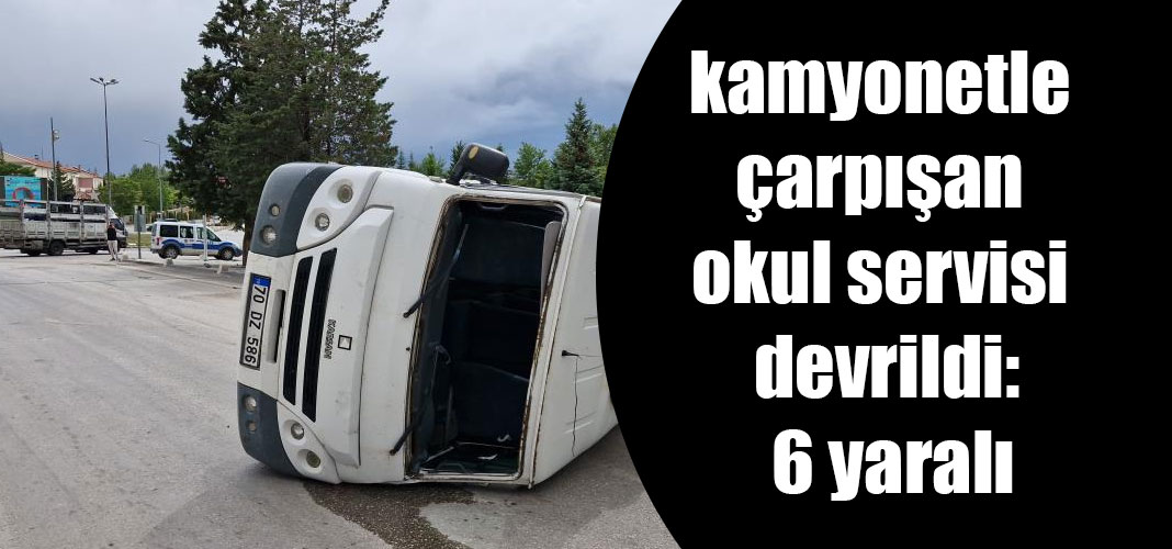 Karaman’da kamyonet ile özel eğitim öğrencilerini taşıyan okul servisi çarpıştı. Kazada yol ortasına devrilen okul servisindeki 4’ü öğrenci 6 kişi yaralandı.