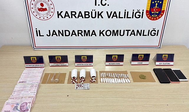Karabük'te jandarma ekiplerince düzenlenen uyuşturucu operasyonunda çeşitli miktarlarda uyuşturucu madde, sentetik ecza hap ve suçtan elde edildiği değerlendirilen para ele geçirilirken, 2 şüpheli gözaltına alındı.