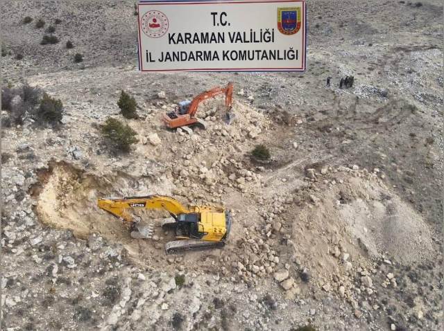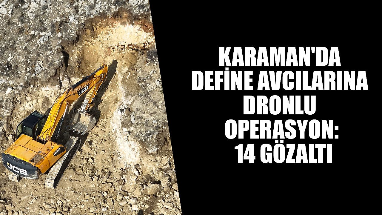 Karaman İl Jandarma Komutanlığı ekipleri, define aramak amacıyla tarihi sit alanlarında izinsiz kazı yapan bir gruba yönelik başarılı bir operasyon gerçekleştirdi. Güldere köyü yakınlarında 2 iş makinesiyle kazı yapıldığına ilişkin alınan ihbar üzerine harekete geçen ekipler, "Anadolu Mirası" operasyonları kapsamında bölgede karadan ve havadan (dron ile) geniş çaplı bir çalışma başlattı.Yapılan teknik ve fiziki takip sonucunda, M.T., M.D., F.T., M.M.S., M.A., K.G., İ.T., A.K., A.Ö., S.U., E.G., M.A., Ö.Ö. ve R.K. isimli 14 şahıs, iş makineleriyle kazı yaparken suçüstü yakalandı.Operasyonda, define aramak için kullanılan 2 iş makinesi, 1 dedektör, 1 alan tarama cihazı ve çok sayıda kazı malzemesine el konuldu. Yakalanan 14 şahıs, jandarma tarafından gözaltına alınarak sevk edildi. Şüphelilerin, “Kültür ve Tabiat Varlıklarını Koruma Kanunu’na aykırı hareket etmek” suçundan soruşturmalarının devam ettiği öğrenildi.