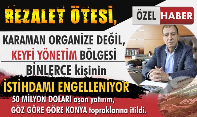 Karaman Organize Sanayi Bölgesindeki keyfi yönetimler, gerçek yatırımcıların arzuladığı binlerce kişinin istihdamını da engelliyor.