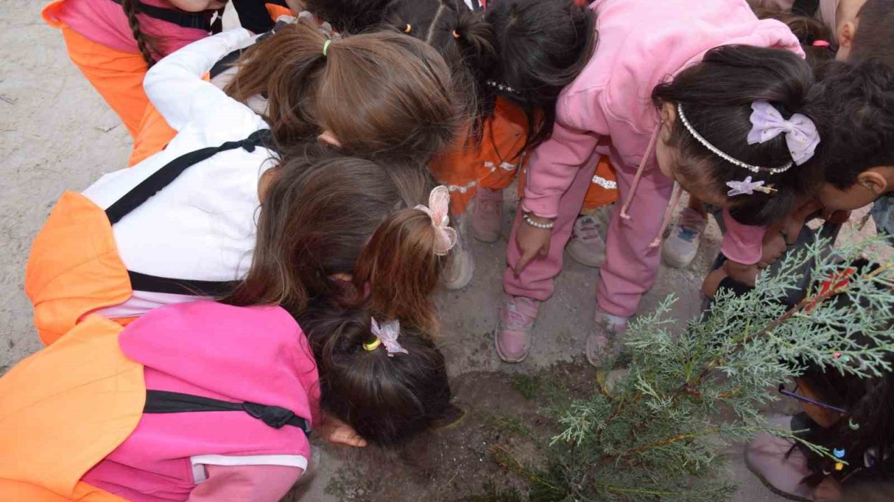 Karapınar'da Minikler Yeşil Çevre İçin Fidan Dikti