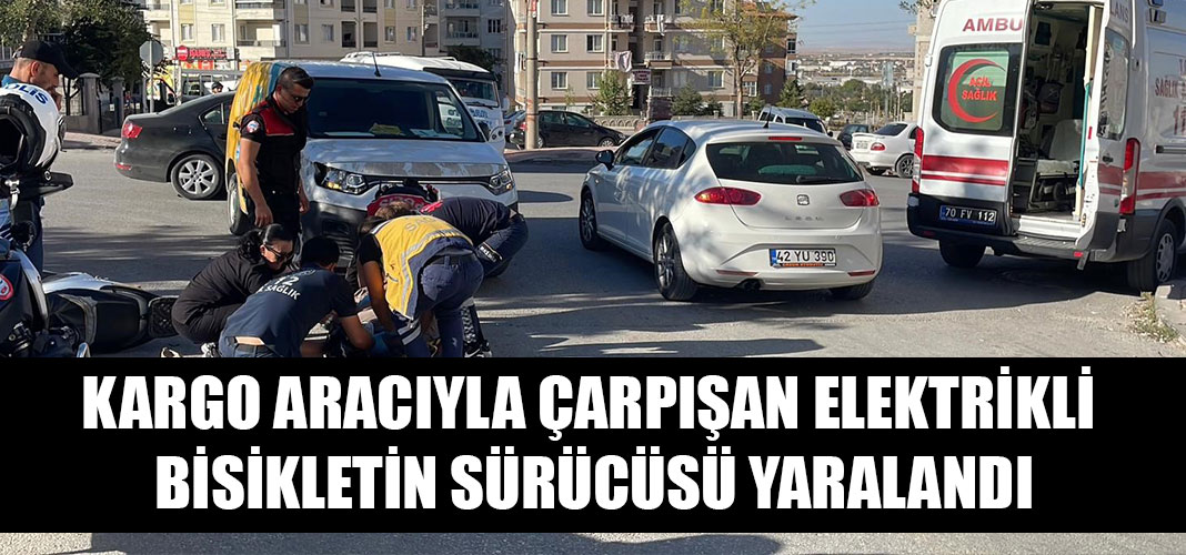 Karaman’da kargo dağıtım aracıyla çarpışan elektrikli bisiklet sürücüsü kadın yaralandı.