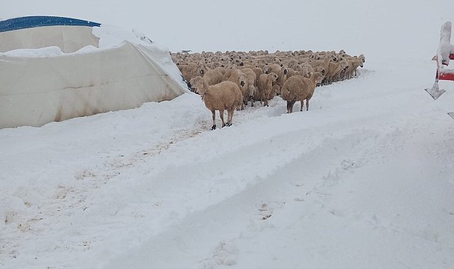 Sivas'ta 1 gün boyunca etkisini gösteren kar yağışı sonrası koyun sürüsünün bulunduğu çadır çöktü. 8 koyun telef olurken sürünün geri kalanı iş makinası yardımıyla kurtarıldı.