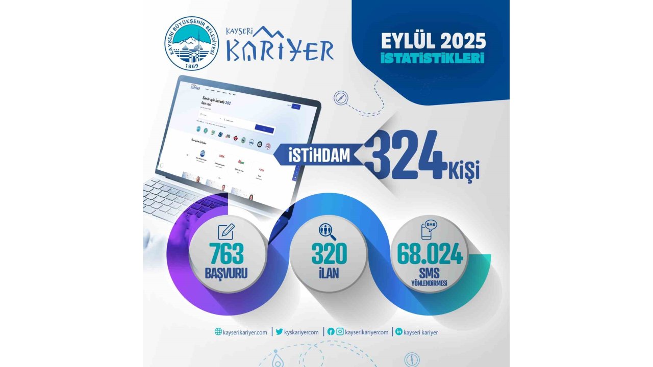 Kayseri Büyükşehir Belediyesi bünyesinde istihdama aracı olan önemli kuruluş Kayseri Kariyer Merkezi; iş arayan vatandaş ile işçi arayan firmalar arasında köprü olmaya devam ediyor. Kayseri Kariyer Merkezi, Eylül ayındaki 1 aylık süreçte 324 vatandaşın istihdamına aracılık etti.Sanayi ve ticaret kenti Kayseri'de istihdam ihtiyacı noktasında tarafları buluşturarak iş arayan vatandaşlar ile işçi arayan firmalar arasında iletişimi sağlayan Kayseri Kariyer Merkezi, bu önemli hizmeti sayesinde bugüne dek binlerce istihdama aracılık ederken, 2025 yılı Eylül ayında da bu özverisini sürdürdü. Kayseri'de, 1 aylık süreçte toplam 324 kişinin istihdamına aracılık eden Kayseri Kariyer Merkezi, yine söz konusu süreçte 763 başvuru, 320 ilan ve 68 bin 24 SMS yönlendirmesi işlemlerini yönetirken, süreç içerisinde talep edilen işçi miktarı ise bin 181 oldu. Özverili gayretleri ile çalışmalarını sürdüren Kayseri Kariyer Merkezi, 2025 yılındaki toplam 9 aylık süreçte, 2 bin 316 kişinin istihdamına aracılık etmek suretiyle katkı sağlarken, bu süreçte aylık ortalama 250'nin üzerinde istihdama imkân sağlamış oldu. 9 aylık süreç içerisinde 6 bin 5 başvuru, 354 bin 187 SMS yönlendirmesi ve 2 bin 315 ilanın işlenmesini gerçekleştiren Kayseri Kariyer Merkezi'nde, bu süreçte toplam 6 bin 109 talep edilen işçi miktarı meydana geldi.Kayseri Kariyer Merkezi ayrıca şehrin iş ve işçi ihtiyacına yönelik faaliyetlerinde konuya ilişkin firmalardan ve insan kaynakları yöneticilerinden ziyaretçileri de merkezinde ağırlayarak istişarelerde bulunmayı sürdürüyor.