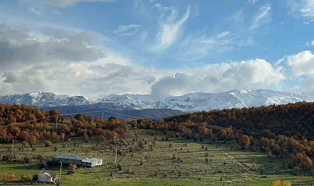 Bingöl'ün yüksek kesimlerinde etkili olan kar yağışıyla birlikte dağlar beyaza bürünürken, eteklerinde hâlâ devam eden sonbaharın sıcak renkleri ortaya kartpostallık görüntüler çıkardı. Birçok noktada, karla kaplı zirveler ile sarı ve kahverenginin tonlarına bürünen orman dokusu iç içe görüntüler oluşturdu.