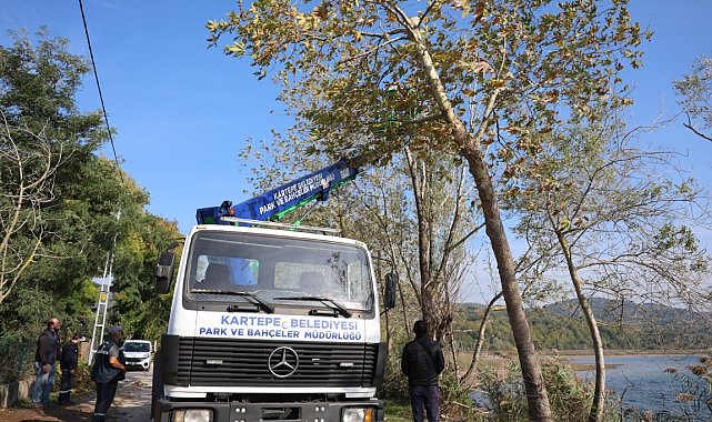 Kartepe Belediyesi Park ve Bahçeler Müdürlüğü ekipleri, ilçedeki yeşil alanlarda ağaç budama çalışması yapıyor.