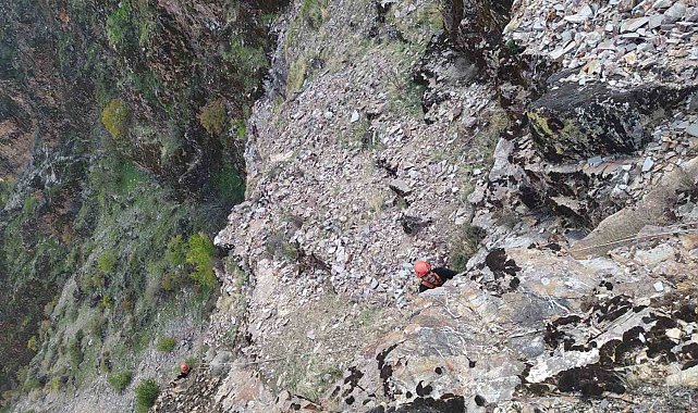 Kayalıklarda mahsur kalan keçiler kurtarıldı