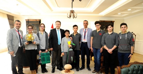 Talas Belediye Başkanı Mustafa Palancıoğlu Bahçeşehir Kolejinin genç mucitlerini makamında ağırlayarak projelerini inceledi.First Lego League Ankara turnuvasına katılan öğrenciler 72 takım arasından ödülle ayrıldılar. Genç mucitler kuş...