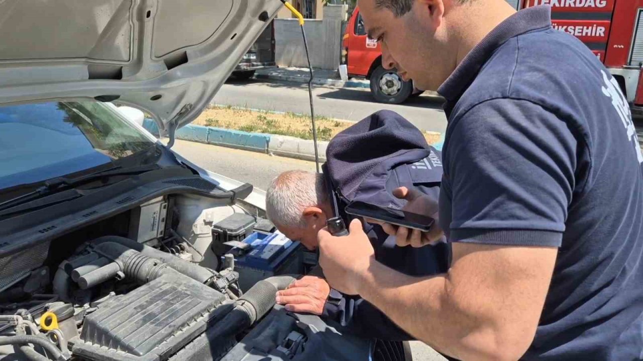 Tekirdağ'da bir araçta yaklaşık 2 saat süren kurtarma operasyonunda minik kedi, telefondaki kedi sesi yardımı ile yeri tespit edilerek sağ salim çıkarıldı.