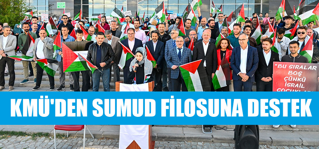 Karamanoğlu Mehmetbey Üniversitesi'nde (KMÜ) akademisyen ve öğrenciler Sumud Filosuna destek vermek için bir araya geldi.İnsan Hak ve Hürriyetleri Topluluğu'nun üniversite kütüphanesi önünde düzenlediği destek programına akademisyenler, öğrenciler, siyasi parti ile sivil toplum kuruluşlarının temsilcileri ellerinde Filistin bayrakları ve İsrail'i protesto eden pankartlarla katıldı.