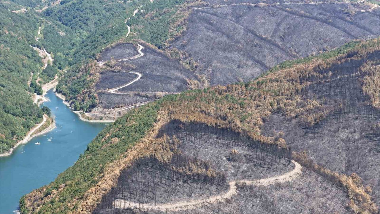 Kocaeli'nin Karamürsel ilçesinde geçtiğimiz günlerde çıkan orman yangınından geriye kalan acı manzara havadan görüntülendi.