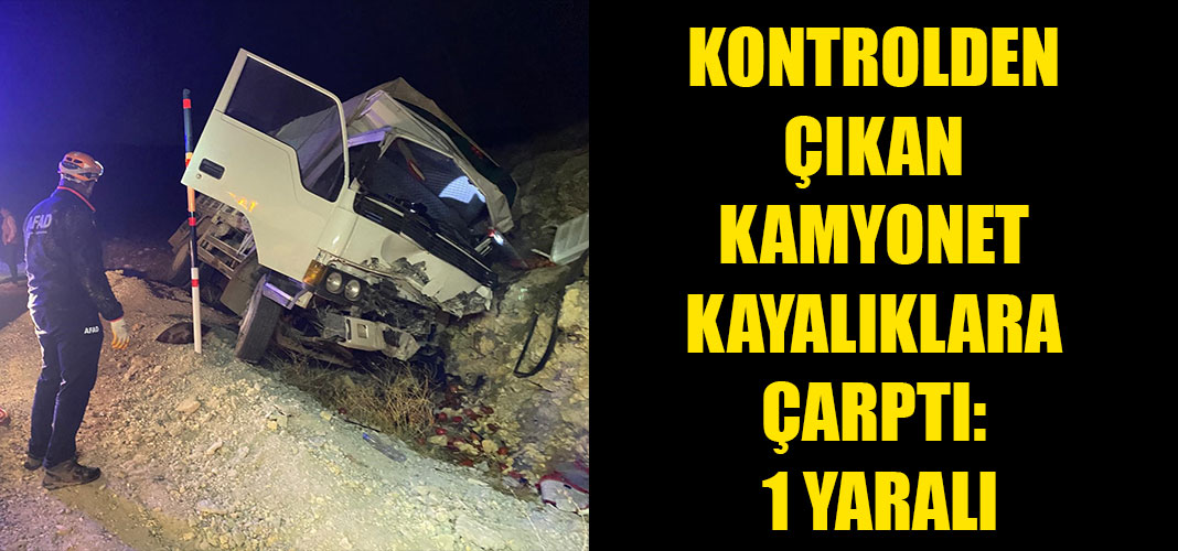 Karaman'da kontrolden çıkan kamyonetin kayalıklara çarpması sonucu meydana gelen kazada 1 kişi yaralandı.