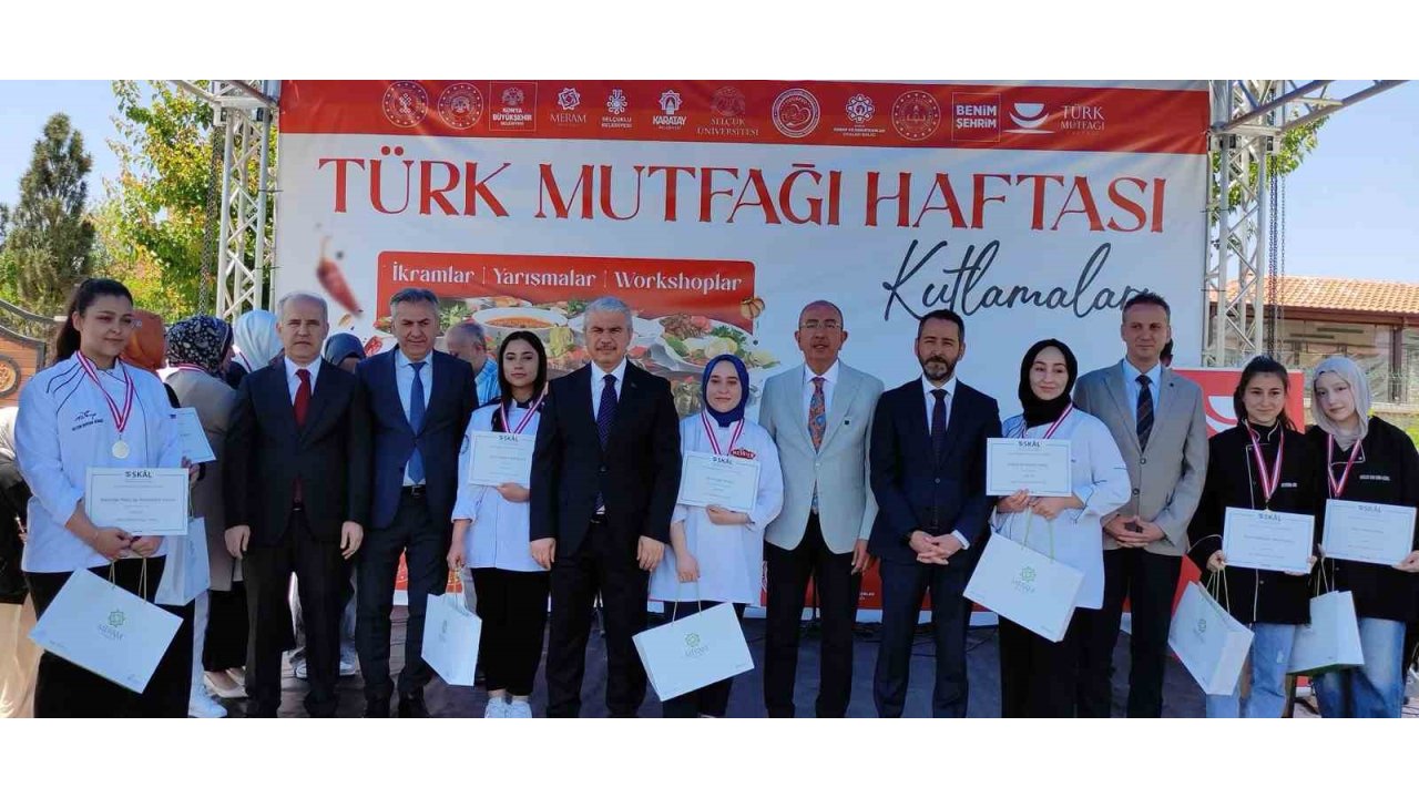 "21-27 Mayıs Türk Mutfağı Haftası" Konya'da çeşitli etkinliklerle kutlanıyor.Türk Mutfağı Haftası kutlama etkinlikleri il protokolü ve vatandaşların katılımıyla Meram Şehir ve Yaşam Kültürü Müzesi'nde gerçekleştirildi. Etkinliğin açılış konuşmasını yapan Meram Belediye Başkanı Mustafa Kavuş, Türk mutfağı ve özellikle de Konya mutfağının, tüm insanlara hitap edebilecek mutfak kültürüne sahip olduğunun altını çizdi.Konya Büyükşehir Belediye Başkan Vekili Mustafa Uzbaş da Anadolu'nun her bir köşesinin binlerce yıllık lezzetlerin taşıyıcısı konumunda olduğunu ifade ederek, Büyükşehir Belediyesi olarak bu zengin mutfak kültürünün yaşatılması, tescillenmesi ve uluslararası alanda tanıtılması adına birçok çalışma yürüttüklerini söyledi.Konya Valisi İbrahim Akın ise vatandaşları hafta boyunca devam edecek kültürel etkinliklere katılmaya davet etti. Akın, "Türk mutfağı, kültürümüzü geleceğe taşıyan bir medeniyet aracı, coğrafyamızın ve ecdadımızın damakta iz bırakan en zarif anlatımıdır" dedi.Protokol konuşmalarının ardından etkinliklere katkıda bulunan işletmelere, kamu kurum ve kuruluşları ile STK'lara plaket, yemek yarışmasında dereceye giren yarışmacılara da ödülleri verildi.Kutlama programına, Konya Valisi İbrahim Akın, Konya Büyükşehir Belediye Başkan Vekili Mustafa Uzbaş, Konya Cumhuriyet Başsavcısı Halil İnan, Meram Kaymakamı Bayram YILMAZ, Karatay Kaymakamı Cengiz Ayhan, Selçuk Üniversitesi Rektör Yardımcısı Prof.Dr. Haldun Soydal, Cumhurbaşkanlığı İletişim Başkanlığı Konya Bölge Müdürü Oğuz Tunç, İl Kültür ve Turizm Müdürü Fikret Fidan, İl Milli Eğitim Müdürü Murat Yiğit katıldı.