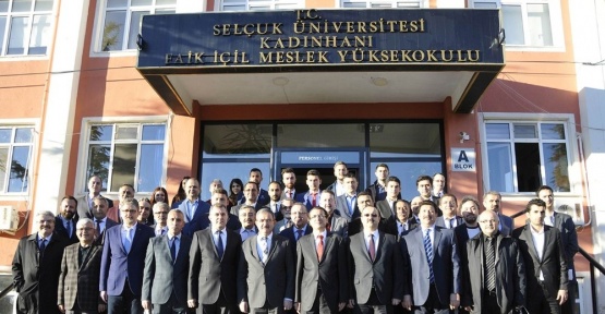 Selçuk Üniversitesi (SÜ) Yönetim Kurulu Toplantısı ve Senato Toplantısı, Kadınhanı Faik İçil Meslek Yüksekokulu ev sahipliğinde, Rektör Prof. Dr. Mustafa Şahin ve rektör yardımcılarının katılımıyla gerçekleştirildi.Kadınhanı Faik İçil Meslek Yüksekokulu’nda düzenlenen toplantıya, Selçuk Üniversitesi Rektörü Prof. Dr. Mustafa Şahin, Rektör Yardımcıları Prof. Dr. Abdullah Topcuoğlu, Prof. Dr. Ahmet Kağan Karabulut, Prof. Dr. Hüseyin Kara ve Prof. Dr. Mehmet Okka, dekanlar, müdürler ve öğretim üyeleri katıldı.Toplantılar öncesi öğrencilerle bir süre sohbet eden Rektör Prof. Dr. Mustafa Şahin, Senato ve Yönetim Kurulu Toplantısı sonrası yaptığı açıklamada, Kadınhanı Faik İçil Meslek Yüksekokulu Müdürü Prof. Dr. Uğur Uslu’ya davetlerinden dolayı teşekkür ederek, “Uğur hocamızın daveti üzerine ilk defa merkezimiz dışında, ilçelerimizden birisinde hem Senato Toplantımızı hem de Yönetim Kurulu Toplantımızı gerçekleştirdik. Güzel ve verimli bir toplantı oldu. Toplantılarımızın, Meslek Yüksekokullarımızın verdikleri eğitim öğretimin kalitesini görme ve var olan sorunları yerinde tespit etme anlamında oldukça verimli gerçekleştiğini düşünüyorum. 17 ilçemizde 22 meslek yüksekokulumuz var. Biz meslek yüksekokullarımızı ilçelerimizde önemli görev ve misyonlar üstlendiğini düşünüyoruz. Hem sosyalleşme anlamında hem finansal ve ekonomik katkı anlamında hem de kültürel etkileşim anlamında önemli hizmetler verilmektedir. Bu açıdan da Kadınhanı Faik İçil Meslek Yüksekokulumuz bin 750 öğrencisiyle güçlü ve Konya sanayisine ara eleman yetiştirme bakımından da önemli bir meslek yüksekokulumuzdur” diye konuştu.Prof. Dr. Şahin, toplantıların güzel ve verimli geçmesi dolayısıyla belirli aralıklarla toplantıları ilçelerde gerçekleştirmek istediklerini, bu toplantı sürecinde ziyaretlerin ilçe halkı açısından da önemini görmüş olduklarını sözlerine ekledi.Kadınhanı Faik İçil Meslek Yüksekokulu Müdürü Prof. Dr. Uğur Uslu ise, Rektör Prof. Dr. Şahin ve senato üyelerine, Senato Toplantısı ve Yönetim Kurulu Toplantısı’nı Kadınhanı Faik İçil Meslek Yüksekokulu’nda gerçekleştirdikleri için teşekkür etti.Rektör Prof. Dr. Şahin ve beraberindeki yönetim kurulu ve senato üyeleri, daha sonra Kadınhanı Belediyesi’nce Kadınhanı Kültür Merkezi’nde düzenlenen yemeğe katıldı. Programa, Kadınhanı Kaymakamı Ercan Çiçek, Belediye Başkanı Mehmet Nuri Ödük ve diğer protokol üyeleri de eşlik etti.Rektör Prof. Dr. Şahin, İlçe Belediye Başkanı Ödük ve Meslek Yüksekokulu Müdürü Prof. Dr. Uslu yemekte selamlama konuşması gerçekleştirdi. Program sonunda, İlçe Belediye Başkanı Ödük, Rektör Prof. Dr. Şahin’e tablo takdim etti.