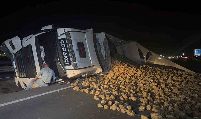 Aksaray'da sürücüsünün köpeğe çarpmamak için manevra yaptığı pancar yüklü tır refüje devrildi. Pancarların döküldüğü yol ulaşıma kapanırken, kazaya sebep olan köpeğin ise olay yerinden ayrılmadığı görüldü.Kaza, Aksaray-Adana karayolunda yaşandı. Edinilen bilgiye göre, Konya'nın Karapınar ilçesinden 42 L 7695 plakalı tırına yüklediği pancarlarla Amasya'ya gitmek üzere yola çıkan Gökhan Çorakçı (41), Aksaray'a geldiğinde önüne çıkan köpeğe çarpmamak için manevra yaptı. Manevra yapan sürücü direksiyon hakimiyetini kaybederken, kontrolden çıkan tır refüje devrildi. Devrilen tırın dorsesindeki pancarların dökülmesiyle yol trafiğe kapandı. Kazayı gören diğer sürücüler durumu hemen 112 Acil Çağrı Merkezine bildirdi. İhbar üzerine olay yerine polis ekipleri sevk edildi. Kaza mahalline gelen ekipler yolda güvenlik önlemi aldı. Yaralananın olmadığı kazaya sebep olan köpek ise olay yerinden ayrılmadı.Kazayı anlatan tır sürücüsü Gökhan Çorakçı, "Köpek denk geldi önüme. Ondan kaçalım derken zaten ben de hapşırıyordum, hiçbir şey hatırlamıyorum. Ondan sonra refüje girmişim, yatmış araba" dedi.