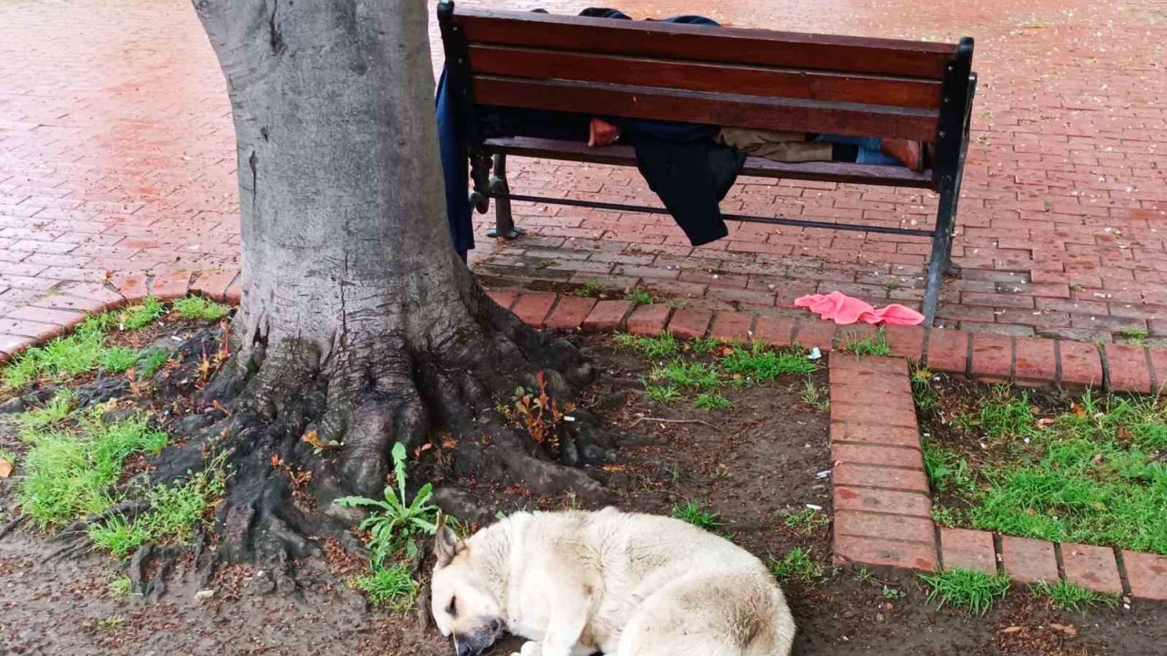 Köpeğin Sadakati: Bankta Uyuyan Adamı Yalnız Bırakmadı
