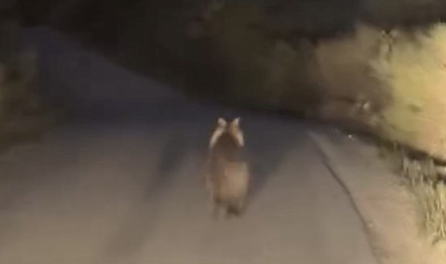 Çanakkale'nin Biga ilçesinde seyir halinde olan aracın önüne çıkan ayı bir süre araç ile adeta yarıştı. O anlar cep telefonu kamerasına yansıdı.Biga ilçesi Elmalı köyü mevkiinde seyir halinde olan bir aracın önüne ayı çıktı. Araç içindekiler ise o anları cep telefonu kamerası ile yakaladı. Araç ile adeta yarışan ayı bir süre sonra ormana doğru ilerleyerek gözden kayboldu.