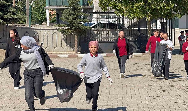 Yozgat'ta çocuklar, örnek davranışa imza atarak hem okullarındaki hem köylerindeki çöpleri topladı.