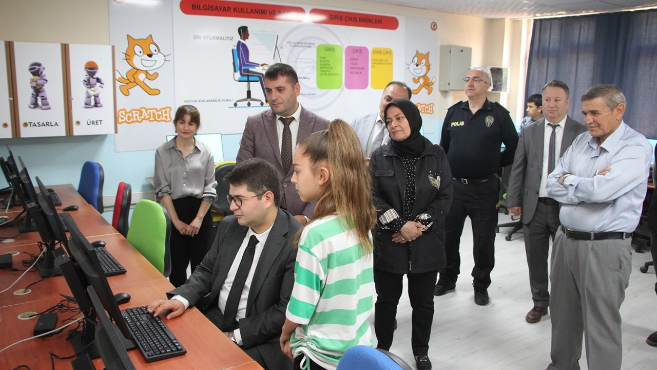 Manisa'nın Kula ilçesinde Vali Muzaffer Ecemiş Ortaokulu'nda açılan bilişim sınıfıyla öğrenciler çağın ihtiyaçlarına uygun ortamda eğitim görecek.