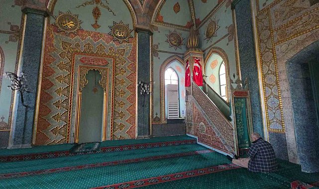 Kütahya'da Osmanlı'nın son döneminde inşa edilen tarihi Yeşil Camii, adını aldığı yeşil ve altın sarısı ağırlıklı iç süslemeleriyle dikkat çekiyor. Saray Mahallesi'nde yer alan cami, 1905 yılında dönemin Kütahya Mutasarrıfı Ahmed Fuad Paşa tarafından, hayırseverlerin desteğiyle yaptırıldı. Caminin iç süslemeleri, Osmanlı döneminde Kütahya'da görev yapan saray ressamı Rıza Bey tarafından özenle hazırlandı. Yapının içi, zeminden tavana kadar kalem işi, kabartma, yağlı boya bezemeler, bitkisel motifler ve geometrik şekillerle donatılmış durumda.Abdülhamid Han'ın emriyle Ahmet Fuat Paşa tarafından yaptırıldıYeşil Camii'nin mimari özellikleri hakkında bilgi veren cami imam hatibi Ahmet Türk, caminin benzersiz detaylarla süslendiğini belirtti. Türk, "Camimiz 1905 yılında Abdülhamid Han'ın emriyle Ahmet Fuat Paşa tarafından yaptırılmıştır. Devlet ve halk el ele vererek bu camiyi inşa etmiştir. Sekiz direk üzerine kurulu kubbemsi bir yapıya sahiptir. Dışarıdan küçük görünür ancak içi adeta bir çeyiz gibi işlemelidir. Süslemeleri, dönemin Yıldız Sarayı'nın baş mimarı ve tezyinat ustası Rıza Bey tarafından yapılmıştır. İçeride dört farklı kalemle yazılmış dua ayetleri ve hat yazıları bulunur. Yıldız Sarayı'na özgü motifler ağırlıktadır. Caminin kendine has bir mihrabı ve minberi vardır. Altın yaldız, yeşil ve gümüş tonlarında işlemeler dikkat çeker. Kapıdan girildiğinde, tam karşıda tavana kadar uzanan süslemeler göze çarpar. Girişte ve karşı duvarda iki 'helal' bulunmaktadır. Bunlardan birinde Fetih Suresi'nin başlangıcı, diğerinde küfi yazıyla Besmele-i Şerif yer alır. Bu helallerde ayrıca o dönemin tarikatlarına ait on dört tâci-i şerif bulunmaktadır. 'Hepsi helalimizin gölgesi altındadır' mesajı verilmiştir. Cami, dönemin süsleme sanatını ve hat geleneğini yansıtan eşsiz örneklerle doludur. Yapanlardan Allah razı olsun. Görmek isteyen herkesi bekliyoruz" diye konuştu.Kütahya'nın kültürel mirasında önemli bir yere sahip olan Yeşil Camii, Osmanlı tezyinat sanatının özgün izlerini taşıyan nadide yapılar arasında yer alıyor.Yaklaşık 120 yıllık tarihi ile ayakta duran Yeşil Camii, aynı anda 250 kişiyi ağırlayabilme kapasitesine sahip.