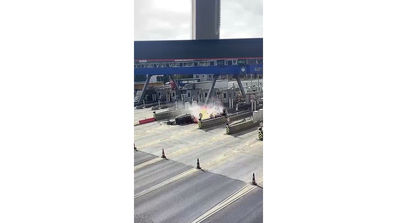 İstanbul Kuzey Marmara Otoyolu gişelerinde bir kişi kiraladığı otomobille beton refüje çarptı. Takla atan araç parçalanarak yandı. Sürücü hayatını kaybederken kaza anı kameraya yansıdı.Olay bugün saat 14:00 sıralarında Arnavutköy ilçesi Kuzey Marmara Otoyolu Fatih Mahallesi Fatih Gişeleri mevkii Edirne istikametinde meydana geldi. Edinilen bilgilere göre, 34 GER 871 otomobille seyir halinde olan Hamdi Dursun isimli sürücü beşinci şeritten gişelere girerken beton refüj başına çarptı. Çarpmanın etkisiyle takla atan araç parçalanarak yanmaya başladı. İhbar üzerine olay yerine, polis ve sağlık ekipleri sevk edildi. Sağlık ekiplerini ilk müdahalesini olay yerinde yaptığı Dursun'un hayatını kaybettiği belirledi. Şahın aracı kiraladığı öğrenildi.