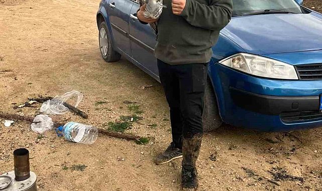 Mahsur kalan mavi balıkçıl kuşunu doğa gezisine çıkan gençler kurtardı