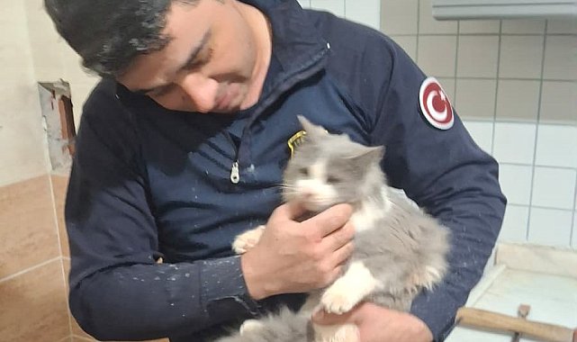Malatya'da havalandırma boşluğuna düşen kedi kurtarıldı