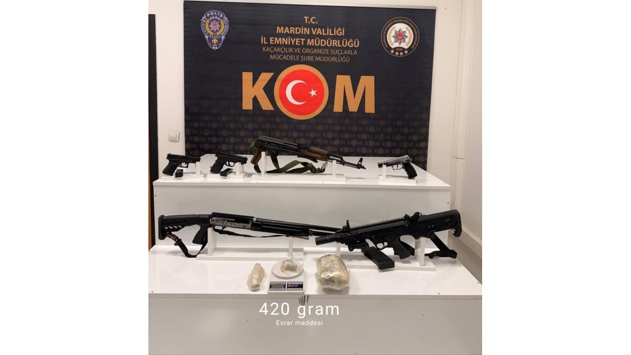 Mardin'de polis ekiplerince düzenlenen silah kaçakçılığı operasyonunda 3 kişi gözaltına alındı.Edinilen bilgiye göre, İl Emniyet Müdürlüğü Kaçakçılık ve Organize Suçlarla Mücadele Şubesi ekiplerince Nusaybin ilçesinde yasa dışı silah alım-satım ve kaçakçılığı yaptığı belirlenen 3 şüpheliye yönelik operasyon gerçekleştirildi. Yapılan aramalarda 1 kalaşnikof uzun namlulu silah, 2 otomatik av tüfeği, 2 ruhsatsız tabanca, 23 av tüfeği kartuşu, 13 adet tabanca fişeği, uzun namlulu silah parçaları, 1 kurusıkı tabanca, 420 gram esrar ve 1 hassas terazi ele geçirildi.Gözaltına alınan 3 şüpheli hakkında adli işlem başlatıldı.