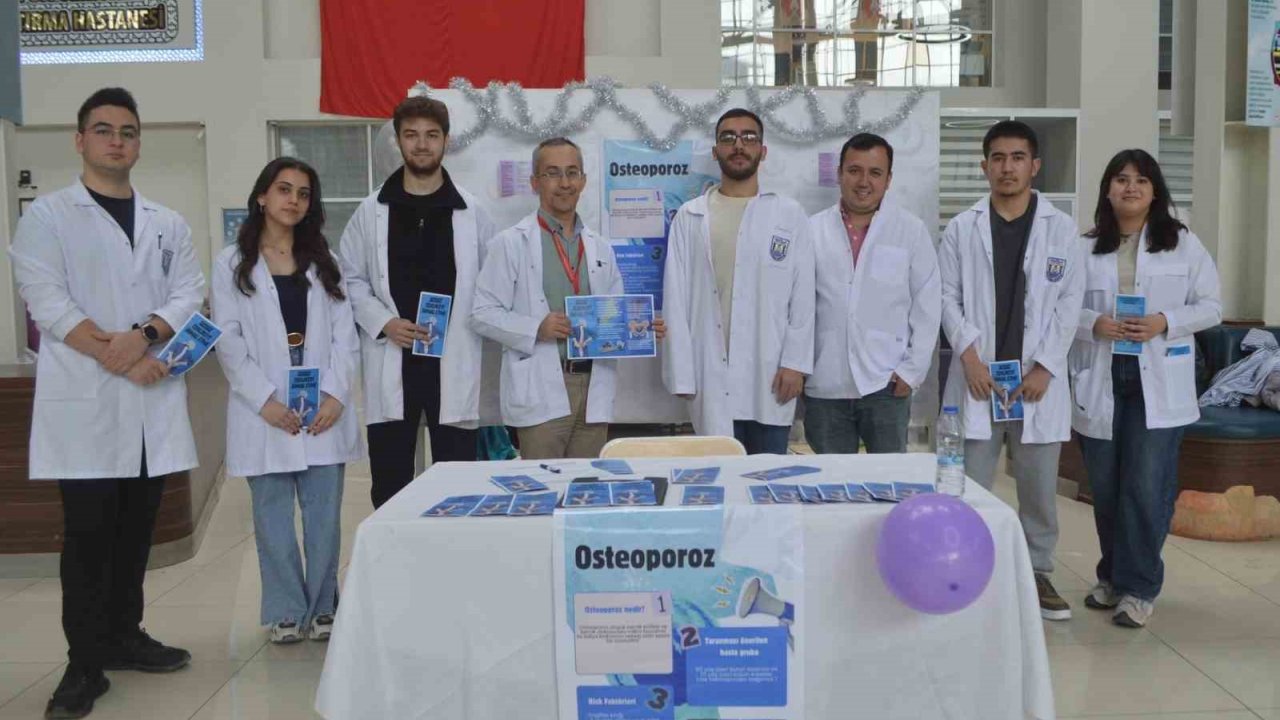 Muğla Sıtkı Koçman Üniversitesi Eğitim ve Araştırma Hastanesi poliklinik girişinde, osteoporoz hastalığına dikkat çekmek ve toplumda farkındalık oluşturmak amacıyla anlamlı bir etkinlik düzenlendi.Fizik Tedavi ve Rehabilitasyon Anabilim Dalı'ndan Dr. Öğretim Üyesi Hüseyin Aydoğmuş'un sorumluluğunda, Muğla Sıtkı Koçman Üniversitesi Tıp Fakültesi Dönem 1 öğrencileri tarafından Sosyal Sorumluluk Projesi kapsamında hayata geçirilen etkinlikte, "Daha İyi Kemiklerin Olsun, Sessiz Tehlikeyi İhmal Etme" sloganıyla bilgilendirme broşürleri dağıtıldı.Etkinlikte osteoporozun, yani halk arasında bilinen adıyla kemik erimesinin, düşük kemik yoğunluğu ve kemik dokusunda oluşan bozulmalar nedeniyle kemiklerin zayıflamasına ve kırılgan hale gelmesine yol açan, sessiz ilerleyen ancak ciddi sonuçlar doğurabilen bir hastalık olduğu vurgulandı.Başhekim yardımcısı Kolcuoğlu'ndan destekEtkinlik alanını ziyaret eden Muğla Eğitim ve Araştırma Hastanesi Başhekim Yardımcısı Op. Dr. Süreyya Kolcuoğlu, Dr. Öğr. Üyesi Hüseyin Aydoğmuş ve projeye katkı sunan tıp fakültesi öğrencilerine teşekkür ederek, toplum sağlığına katkı sunan bu tür farkındalık çalışmalarının önemine dikkat çekti.