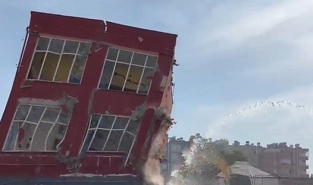 Mersin'in Tarsus ilçesinde operatör, hasar gören 2 katlı binayı kırıcıyı yere vurarak titreşimle yıktı. O anlar cep telefonu kamerasına yansıdı.Alınan bilgiye göre, Şehit Mustafa Mahallesi Cumhuriyet Caddesinde bulunan 2 katlı bina depremde ağır hasar aldı. Yerinde dönüşüme alınarak yıkım kararı verilen bina için kontrollü yıkıma başlandı. Gerekli tedbirlerin alınmasından sonra kent merkezinde bulunan binanın titretme yöntemiyle yıkılması uygun görüldü. Binayı yıkmak için gelen iş makinesi, 2 katlı yapıya dokunmadan titreşimle binayı yıktı. Titreşim ile yıkılan 2 katlı binada toz bulutları oluştu.İtfaiye ekipleri de toza karşı o sırada bölgede sulama yaptı.