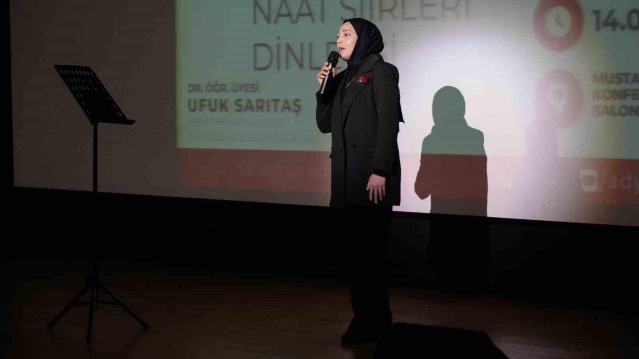 Adıyaman Üniversitesi Fen Edebiyat Fakültesi Türk Dili ve Edebiyatı Bölümü tarafından "Mısralara yansıyan nur: naat şiirleri dinletisi" programı düzenlendi.