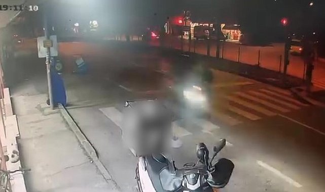 Bursa'da kendisine kırmızı yanmasına rağmen yaya geçinden hızla geçen motosikletli kurye, karşıya geçmeye çalışan yaşlı adama çarptı. Motosikletli sürücü olay yerinden kaçarken, ağır yaralanan yaya hastaneye kaldırıldı.