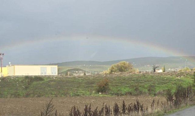 Kütahya'nın Tavşanlı ilçesinde, sağanak yağışın ardından ortaya çıkan gökkuşağı, ilçe sakinlerine görsel bir şölen yaşattı. Özellikle Moymul Ovası üzerinde beliren gökkuşağı, ovayı adeta bir tabloya çevirerek seyrine doyumsuz rengarenk bir manzara oluşturdu.Yağmurun ardından güneşin kendini göstermesiyle gökyüzünde beliren yedi renkli yay, izleyenleri kendine hayran bıraktı. Ovanın yeşil dokusu üzerine yansıyan gökkuşağının canlı renkleri, fotoğraf karelerine de eşsiz görüntüler taşıdı.Doğa olayının sunduğu bu büyüleyici manzara karşısında duygularını dile getiren vatandaşlar, "Yağmur sonrası bu güzelliği görmek adeta bir lütuf. Moymul Ovası'nda böyle bir gökkuşağına şahit olmak gerçekten büyüleyiciydi" ifadelerini kullandı.Gökkuşağı, bölgede kısa süreliğine de olsa sevinç ve hayranlık uyandırırken, doğanın sanat eseri bir kez daha gözler önüne serilmiş oldu.