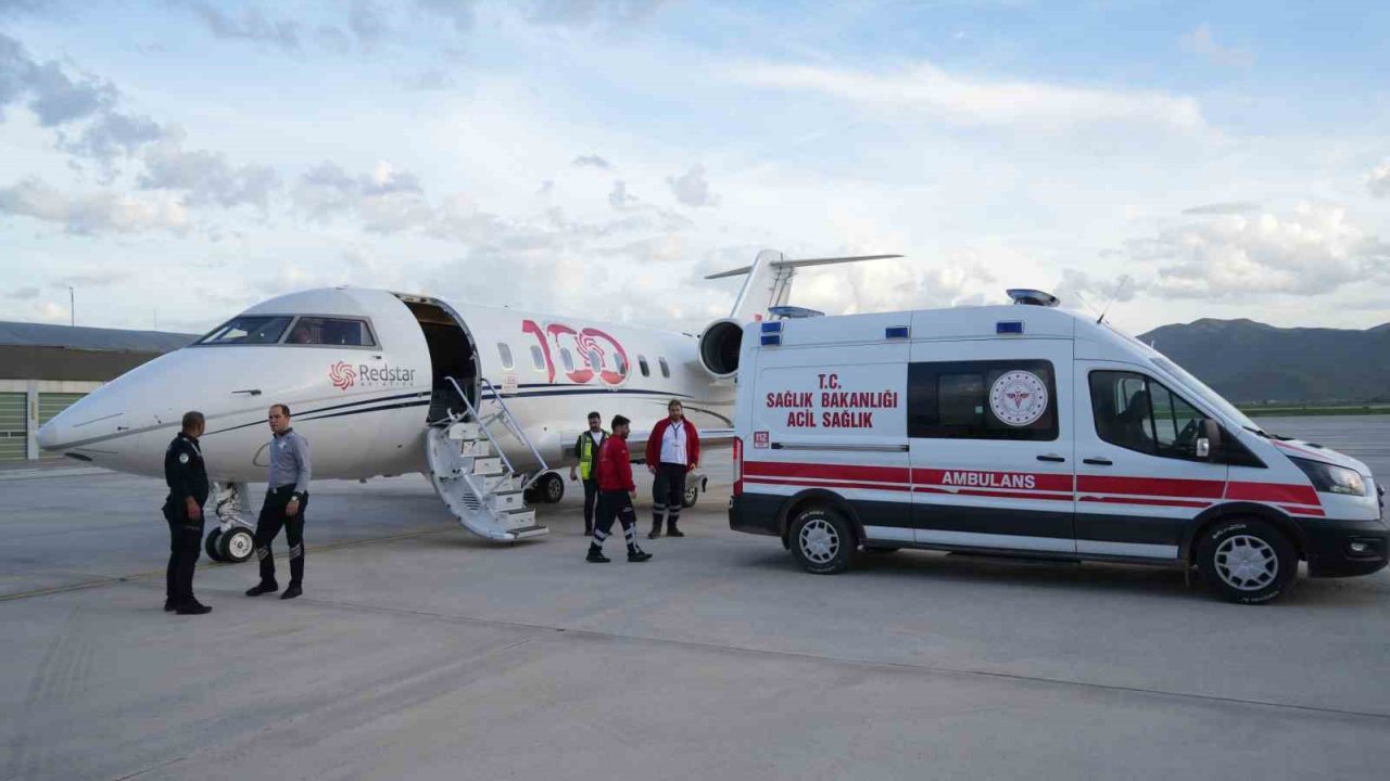 Muş'ta 7 aylık bir bebek, uçak ambulansla Ankara'ya sevk edildi.Muş Devlet Hastanesi'nde hemofagositik sendrom ve karaciğer yetmezliği tanıları konulan 7 aylık bebeğin, Muş Devlet Hastanesi tarafından yapılan değerlendirme sonrası ileri tetkik ve tedavisinin Ankara Etlik Şehir Hastanesi'nde yapılmasına karar verildi. Sağlık Bakanlığına bağlı uçak ambulans, İstanbul Havalimanı'ndan havalanarak Muş'a iniş yaptı. Havalimanına ambulansla getirilen bebek, uzman sağlık ekibi eşliğinde Ankara'ya nakledildi.Sevk sürecinin sorunsuz tamamlandığını ve bebeğin tedavisinin Ankara'da devam edeceğini söyleyen 112 doktoru, "Muş Devlet Hastanesi'nde karaciğer yetmezliği tanısı konulan 7 aylık Mirza bebeğimizi, uçak ambulansla Ankara Etlik Şehir Hastanesi'ne sevk ettik. Şu an durumu iyiye doğru ilerliyor, umarım daha da iyi olacak. Sağlık Bakanlığımızın uçak ambulans hizmeti, küçük yaşta olan hastalarımız için oldukça önemli. Bu hizmet sayesinde hastalarımız güvenli bir şekilde sevk edilerek, daha iyi sağlık hizmeti alabiliyor. Bebeğimiz yaklaşık 20 gündür ishal ve kusma şikayeti yaşıyordu. Aile, bu süreçte çeşitli hastanelere başvurmuş. Son olarak Muş Devlet Hastanesi'nde karaciğer yetmezliği tanısı konuldu ve gerekli sevk işlemleri başlatıldı" dedi.