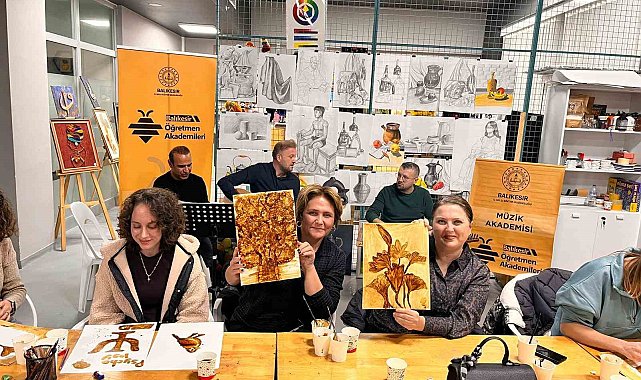 Balıkesir Müzik Akademisinin 2025-2026 Eğitim Öğretim Yılı ikinci faaliyetinde öğretmenler kahvenin rengi müziğin sesi bir araya getirdi."Kahvenin Rengi, Müziğin Sesi" başlığıyla BM 75. Yıl Gençlik Merkezi'nde gerçekleştirilen faaliyette öğretmenler sanat dolu bir gün geçirdi.BM 75. Yıl Gençlik Merkezi Görsel Sanatlar Atölyesinde gerçekleştirilen faaliyette öğretmenler müziğin ilham verici gücü eşliğinde kahve ile boyama tekniğini kullanarak görsel çalışmalar hazırladı. Müzik Akademisi Koordinatörü Evrim Tan'ın rehberliğinde gerçekleştirilen faaliyette kahvenin boyamada kullanımı, kullanımına yönelik teknikler, geçmişten günümüze bu tekniğin kullanıldığı alanlar ve bu teknik ile oluşturulmuş görsel örnekler Evrim Tan tarafından öğretmenler ile paylaşıldı.Kanun Sanatçısı Anıl İbrahim Yıldırım ve Bilgisayar Mühendisi ve Gitarist Taylan Sezer'in de enstrümanlarıyla hazır bulunduğu faaliyette canlı müzik eşliğinde öğretmenler görsel çalışmalarını oluşturmaya başladı. Önce kara kalemle başlayan çizimler kahve tonlarıyla renklenmeye başladı. Çalınan ve söylenen şarkılara da ara ara eşlik eden öğretmenler keyifli dakikalar yaşadı. Oluşturulan çalışmaların incelenmesi ve sunulmasının ardından fotoğraf çekimi ile faaliyet sonlandırıldı.