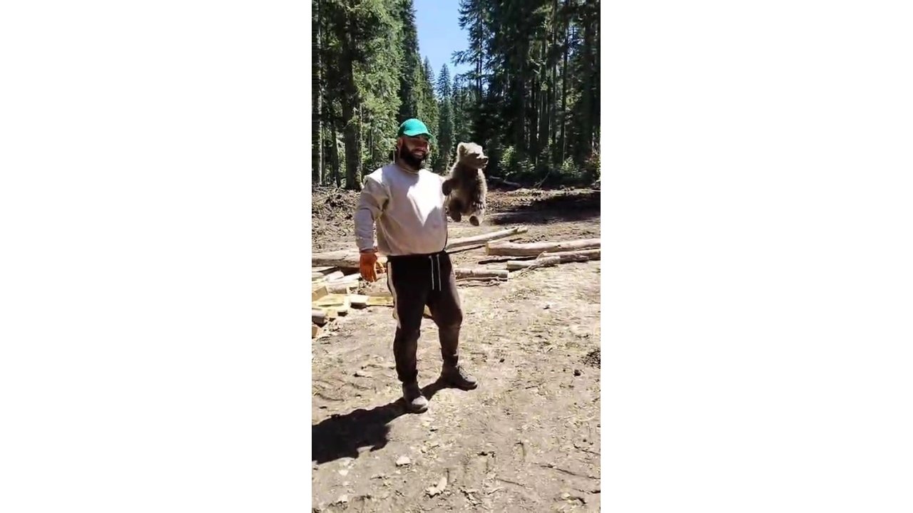 Karabük'te orman işçilerinin yanına gelen yavru ayı koruma altına alındı.