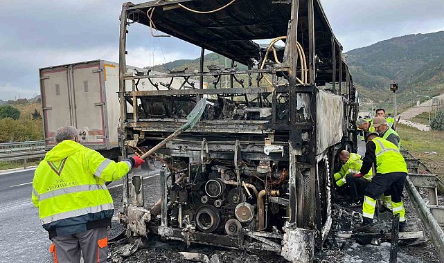 Gebze-Orhangazi-İzmir Otoyolu Orhangazi Tüneli yakınlarında meydana gelen otobüs yangınında Çanakkale'nin Lapseki ilçesinden İstanbul'a geziye giden öğrencileri taşıyan otobüs motor bölümünden alev aldı. Sürücünün emniyet şeridine çekip öğrencileri tahliye ettiği olayda otobüs alev topuna döndü. Otobüs itfaiye ekiplerinin müdahalesi ile söndürüldü.Olay sabah 08.00 sıralarında Gebze-Orhangazi-İzmir Otoyolu Orhangazi Tüneli yakınlarında meydana geldi. Alınan bilgilere göre Çanakkale'nin Lapseki İlçesindeki Plevne Ortaokulundan İstanbul'a gezi için yola çıkan içinde 39 öğrenci, 6 öğretmen ve 2 rehberin bulunduğu tur otobüsü Orhangazi Tüneli yakınlarında motor bölümünden yanmaya başladı.Son anda tahliye edildi.Ahmet Kantarcı (66) idaresindeki 17 HT 555 plakalı otobüsün sürücüsü yangını fark edince aracı emniyet şeridine çekti. Öğrenci ve öğretmenler hızla tahliye edilerek güvenli bir alana toplandığı esnada otobüs alev topuna döndü. İhbar üzerine olay yerine itfaiye ekipleri sevk edildi. Otobüsteki yangın ekiplerin müdahalesi ile söndürüldü.Öğrenciler başka otobüsle yoluna devam ettiYanan otobüsteki öğrenci ve öğretmenler olay yerine çağrılan bir başka otobüs ile yollarına devam ederken, yangın nedeniyle otoyolda güvenlik önlemleri alındı. Yanan otobüs çekici ile bulunduğu yerden kaldırıldıktan sonra trafik normale döndü. Olayla ilgili soruşturma başlatıldı.