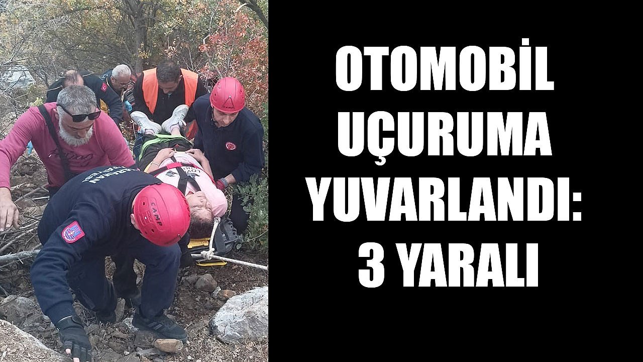 OTOMOBİL UÇURUMA YUVARLANDI: 3 YARALI