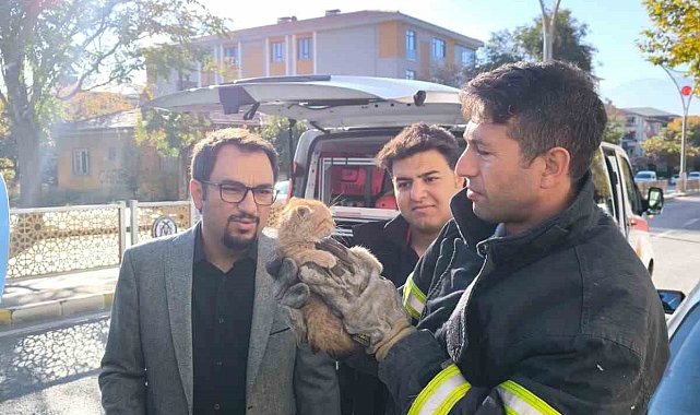 Erzincan'da aracın motor kısmına sıkışan yavru kedi, itfaiye ekiplerinin müdahalesiyle kurtarıldı.