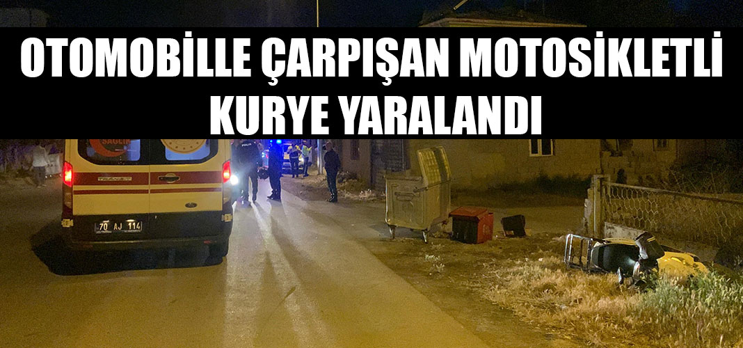 Kaza, Pirireis Mahallesi 1439. Sokak’ta meydana geldi. Edinilen bilgiye göre, H.C.O. (50) idaresindeki 70 HD 658 plakalı Toyota marka otomobil ile A.B. (27) 70 ACB 735 plakalı motosikletli kurye çarpıştı. Çarpışmanın etkisiyle savrulan motosiklet sürücüsü A.B. önce çöp kutusuna ardından yol kenarına devrildi. Kazada motosiklet sürücüsü yaralandı. İhbar üzerine olay yerine sağlık ve polis ekipleri sevk edildi. Yaralı motosiklet sürücüsü sağlık ekibinin olay yerinde yaptığı ilk müdahalenin ardından ambulansla Karaman Eğitim ve Araştırma Hastanesi’ne kaldırılarak tedavi altına alındı.