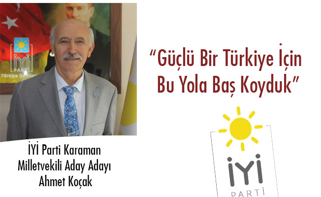 İYİ Parti Karaman Milletvekili Aday Adayı Ahmet Koçak, çocuklarımıza, torunlarımıza daha huzurlu ve güçlü bir Türkiye emanet edebilmek için bu kutlu yola baş koyduklarını belirtti.