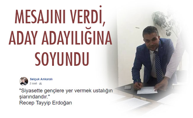 Sürpriz aday adaylığı çıkışı öncesi mesajını sosyal medya üzerinden, Cumhurbaşkanı Recep Tayyip Erdoğan’ın “Siyasette gençlere yer vermek ustalığın şiarındandır.”sözü ile veren Selçuk Ankaralı, Milletvekili Aday adaylığını açıkladı. Ankaralı, istifası sonrası;