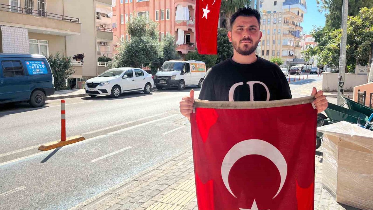 Antalya'nın Alanya ilçesinde Polonya uyruklu bir şahıs, gece saatlerinde bir iş yerinin dış cephesinde bulunan branda üzerindeki Türk bayrağını yerinden çıkartıp aldı.