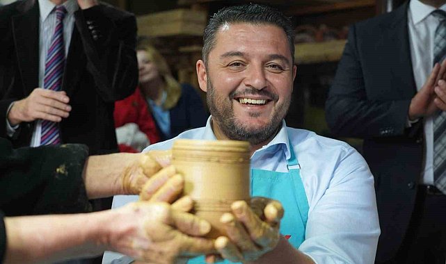 Bulgaristan Rodop Belediye Başkanı Pavel Mihaylov çeşitli ziyaretler için geldiği Bilecik'te ilk defa çömlek tezgahını geçerek çömlek yaptı.