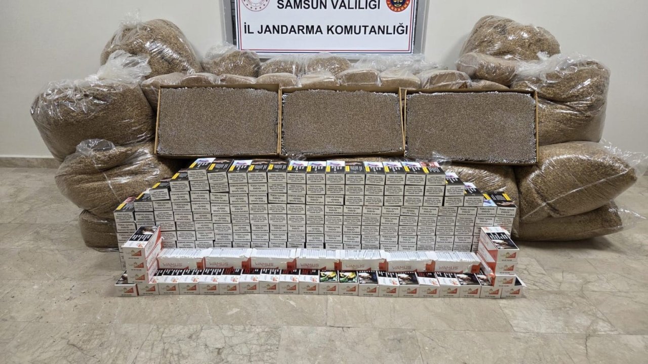 Samsun'da bir depoya düzenlenen baskında 1 ton 75 kilogram kaçak tütün ile 60 bin dolu makaron ele geçirildi.
