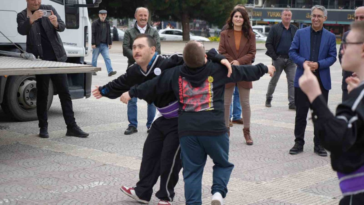 Samsun'da Engelliler Haftası çerçevesinde yapılan etkinlikler renkli anlara sahne oldu. Engelliler çalınan müziklerle kurtlarını döktü.10-16 Mayıs Engelliler Haftası etkinlikleri "farkındalık yürüyüşü" ile başladı. Tütün İskelesi'nde başlayan yürüyüş, Atatürk Anıtı'na kadar devam etti. Akabinde anıtta tören, düzenlendi. Burada çelenklerin sunumundan sonra saygı duruşunda bulunulması ve İstiklal Marşı okundu. Anıttaki törende konuşan Down Sendromlu Çocuklar ve Aileleri Eğitim Dayanışma Derneği (Down Çed) Başkanı Ulviye Demirci, "Engelli bireylerin diğer bireylerle eşit şartlarda yaşam sürdürebilmelerine dikkat çekmek amacıyla Birleşmiş Milletler'e üye 156 ülkede eş zamanlı olarak farkındalık çalışmaları yapılmaktadır. Engelli bireylerin toplumsal yaşamın her alanına aktif katılmalarını sağlamak herkesin görevidir. Engelli bireylerde topluma fayda sağlayabilecek potansiyele sahiptir. Toplumun her kesimin duyarlılığına ihtiyaçlarına vardır. Mutlu bir toplum inşa etmek farklılıkları kabul etmekle olur" dedi."9 bin 312 engellimize evde bakım hizmeti"Aile ve Sosyal Hizmetler İl Müdür Yardımcısı Necmettin Aygün ise "Aile ve Sosyal Hizmet İl Müdürlüğü olarak bin 125 engellimize yaşlı bakım hizmeti, 9 bin 312 engellimize evde bakım hizmeti, kimlik kartı olarak 31 bin 462 engellimize kimlik kartlarımızı ulaştırdık. Erişebilir bir yaşam herkesin hakkıdır. Bu alandaki çalışmalarımızı karalılıkla sürdürmekteyiz. Bu konuda kat edilmesi gereken mesafeler olduğunu da farkındayız" diye konuştu.Oyun havası oynadılarAnıttaki törenin ardından Cumhuriyet Meydanı'na geçildi. Burada çalınan şarkılarla engelliler oyun havaları oynadı, halk oyunları gösterileri yaptı. Ayrıca kurulan stantlarda el emeği ürünler de satışa sunuldu. Etkinliklere Samsun Vali Yardımcısı Vekili/Canik Kaymakamı Şeref Aydın da katıldı.